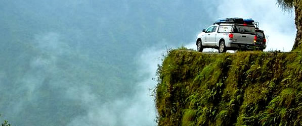 Route de la MortForêt subtropicale Coroico - Route de la MortÀ trois heures de la ville de La Paz, traversant les majestueuses montagnes des Andes et atteignant le pic le plus élevé à 4,700 mètres, nous parcourons la « route de la mort » pour nous rendre à Coroico, à 1,750 mètres au-dessus du niveau de la mer. Au cours de la visite, vous pourrez voir la transformation du paysage qui va de l'aridité de la Cordillère à la jungle subtropicale luxuriante, point intermédiaire avant d'atteindre la forêt amazonienne. Ceci est la fameuse "route de la mort" (Camino de la Muerte), qui peut également être traversée en vélo pour accélérer le rythme cardiaque du visitant, tout en découvrant sa nature exubérante. Depuis le sommet commence la descente le long d'une route asphaltée d'enroulement, nous nous arrêtons à différents endroits pour prendre des photos du paysage unique de la région. Nous continuons notre descente pour entrer dans la jungle elle-même et la partie la plus difficile du parcours. Un chemin de terre étroit où nous admirons d'impressionnantes chutes d'eau. Plus tard, nous nous dirigeons vers Coroico pour profiter d'un délicieux déjeuner. Après le déjeuner, une visite aux plantations de coca est faite et, s`il est la saison, nous verrons également les plantations de café et d'agrumes. Coroico se distingue aussi parce que c`est l'une des rares villes qui ont une population afro-bolivienne qui danse joyeusement au rythme de ses tambours. Il est également possible de visiter de belles cascades naturelles ou l`on peut se rafraîchir à la rivière, à une demi-heure de Coroico. |